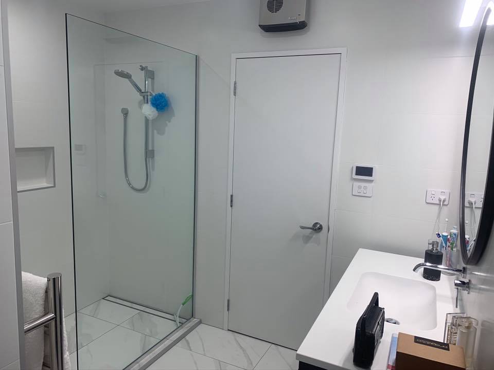 With the removal of a half of the wardrom that was encroching into the bathroom and installation of a cavity slider, we added more space to this bathroom. We replaced the floor due to some rot in it and renewed everything.